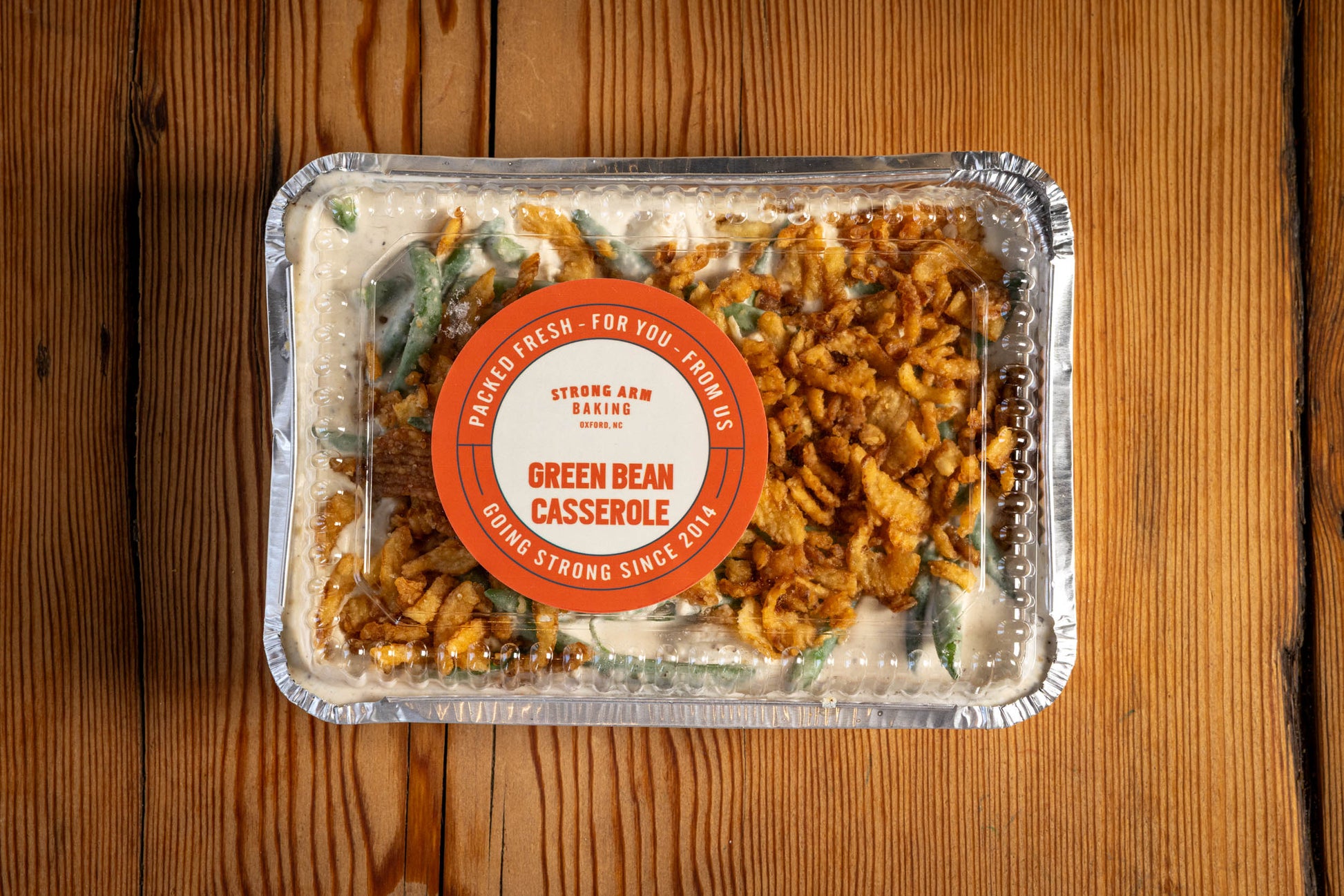 Not your usual GBC. A rich mushroom bechamel gets tossed with blanched fresh green beans, crunchy water chestnuts, and roasted cremini mushrooms. We top it all with a blanket of onion crunchies. A must have.