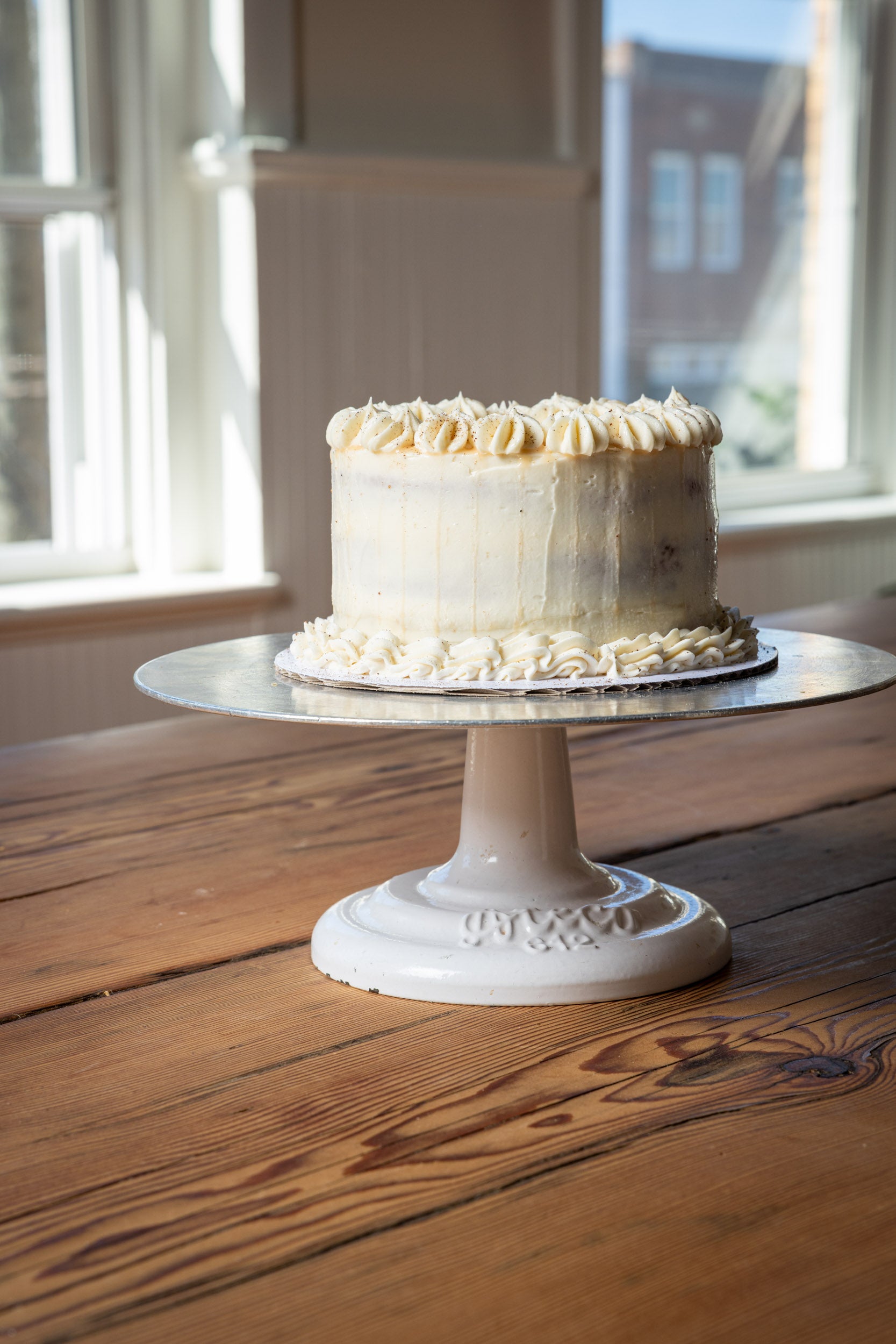 Layers of tender yellow cake filled with silky pastry cream infused with bourbon and a hint of nutmeg — like the essence of a classic holiday punch in dessert form. Finished with smooth, fluffy Swiss meringue buttercream, this cake is rich, elegant, and full of festive cheer.