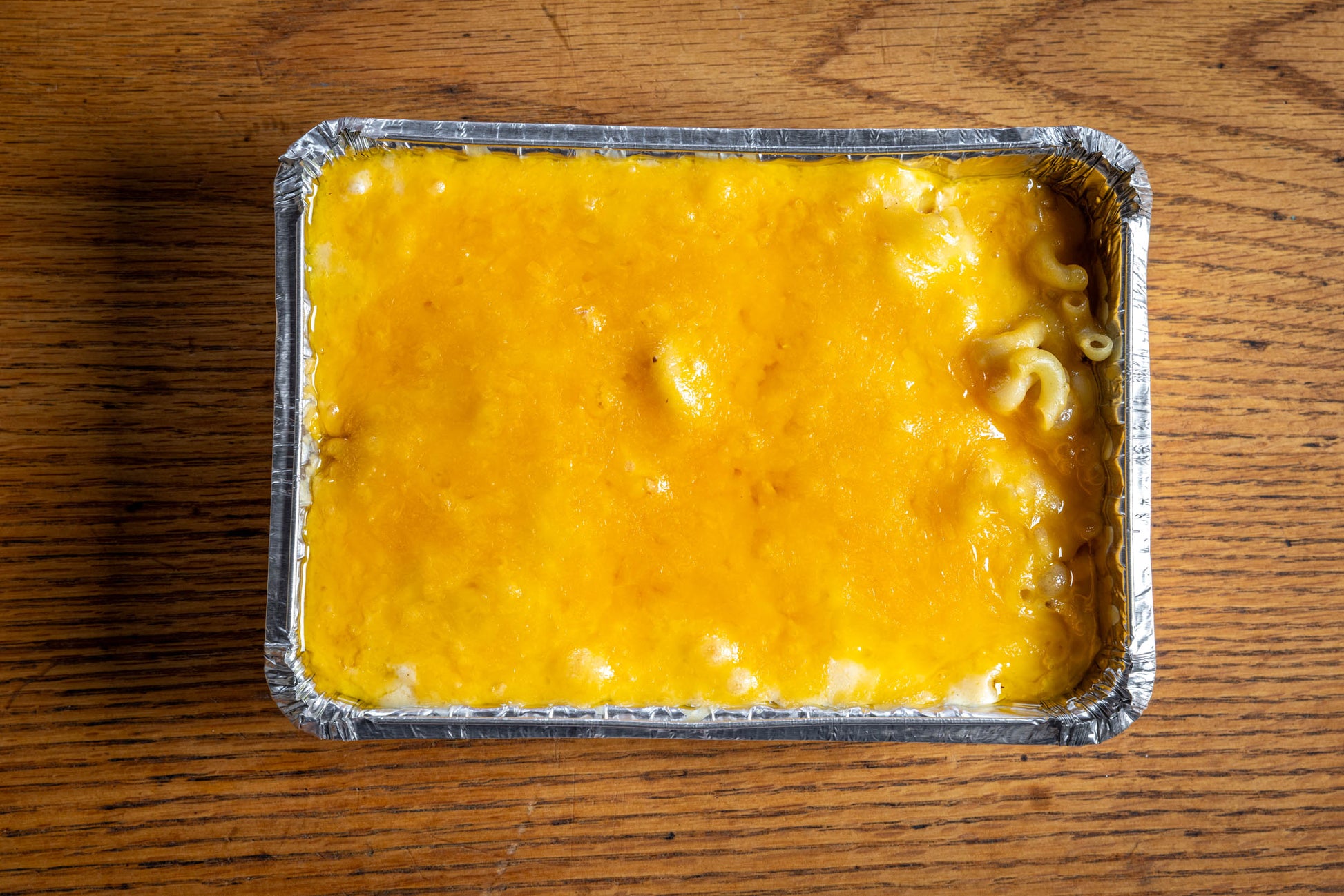 Our Macaroni and Cheese, made with an extra sharp cheddar cream sauce, and lots of cheddar on top. We use Homeland Creamery dairy and extra sharp Cabot white and yellow cheddars. It’s super creamy, and pleases both adults and kids alike.