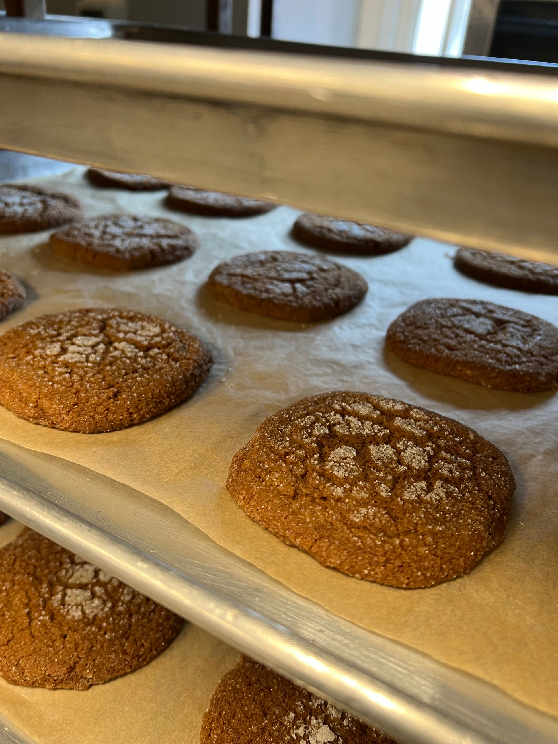 a 4pk of our longest running cookie. A soft molasses ginger cookie, with way more ginger and a heavier pinch of salt that most are used to. We love these cookies.