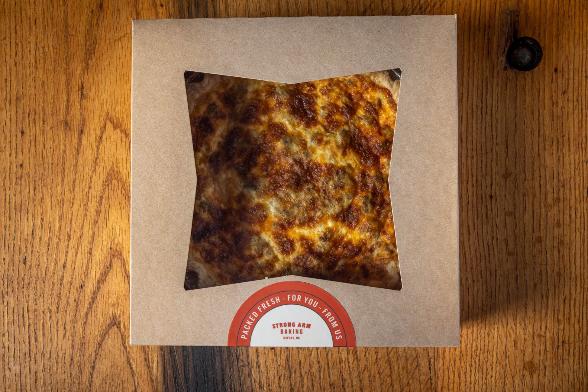 Firsthand Foods sausage and sharp cheddar, baked in our all butter pie pastry with creamy quiche filling. Serves 6 hungry folks or 8 with a salad or side. Works for breakfast, lunch and dinner.